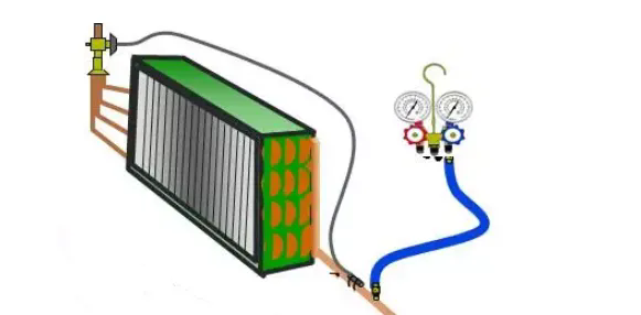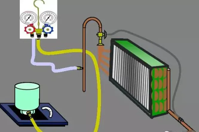 (3)密切注视排气压力表,压力迅速上升表明冷凝器已充满了制冷剂液体。